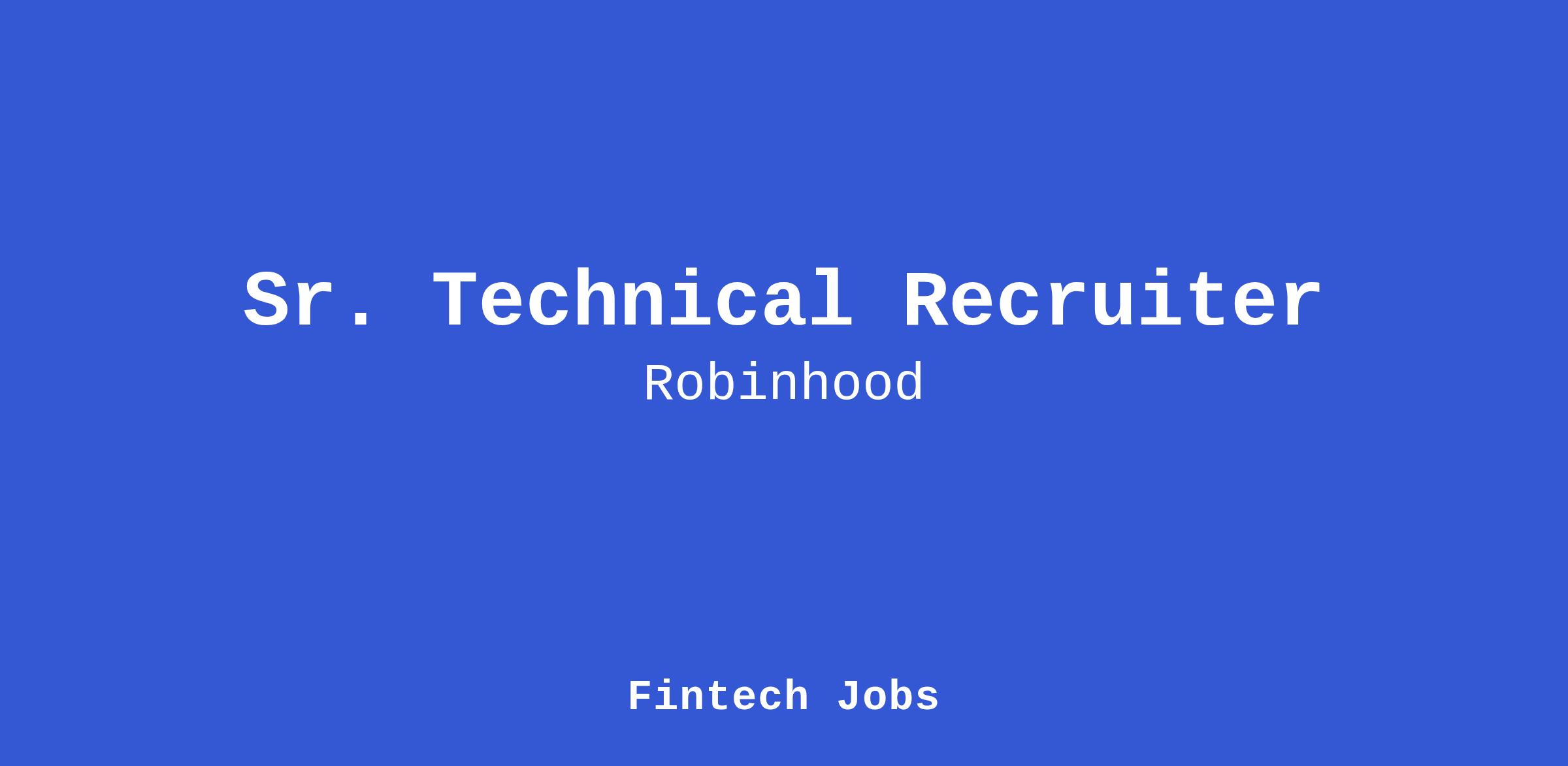 Technical Recruiting is seeking a Recruiter to join the Engineering Recruiting team at Robinhood. This role is essential in supporting our efforts to hire top Frontend Engineering talent. As a recruiter, you will collaborate with leaders across various teams to identify and engage world-class candidates, ensuring a positive experience for both the candidates and hiring teams. Additionally, this position offers the opportunity to support the broader Technical Recruiting organization as needed.