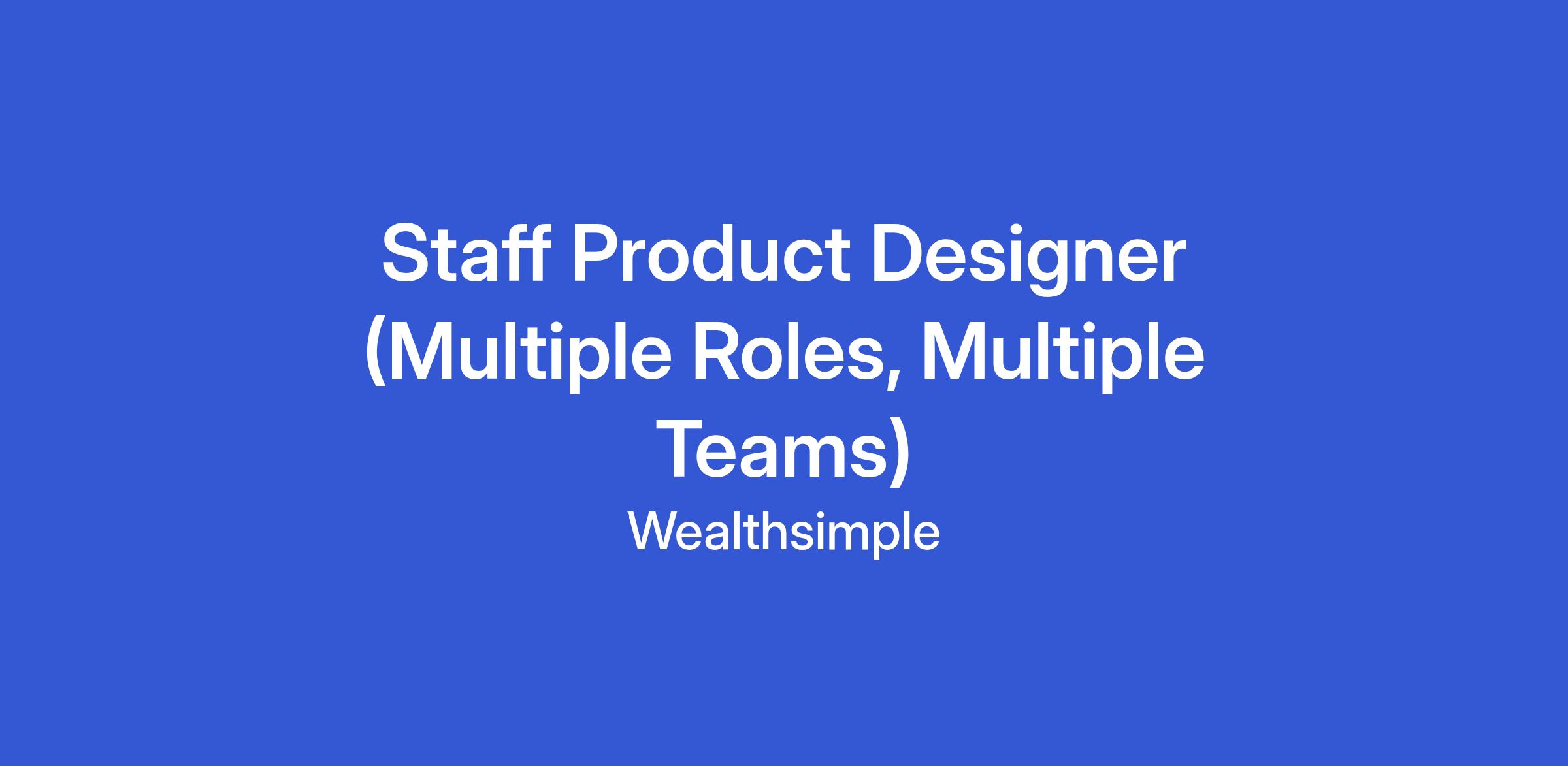 Design is a strategic lever at Wealthsimple — we don’t just make things beautiful, we help shape what gets built. We're growing our Product Design team and hiring both Senior and Staff Product Designers across multiple product areas, including Investing, Banking, and more. Rather than filling a single role, we’re looking for outstanding designers who want to help us define the future of personal finance in Canada. When you apply, we’ll explore where your strengths, experience, and interests align best across our teams.