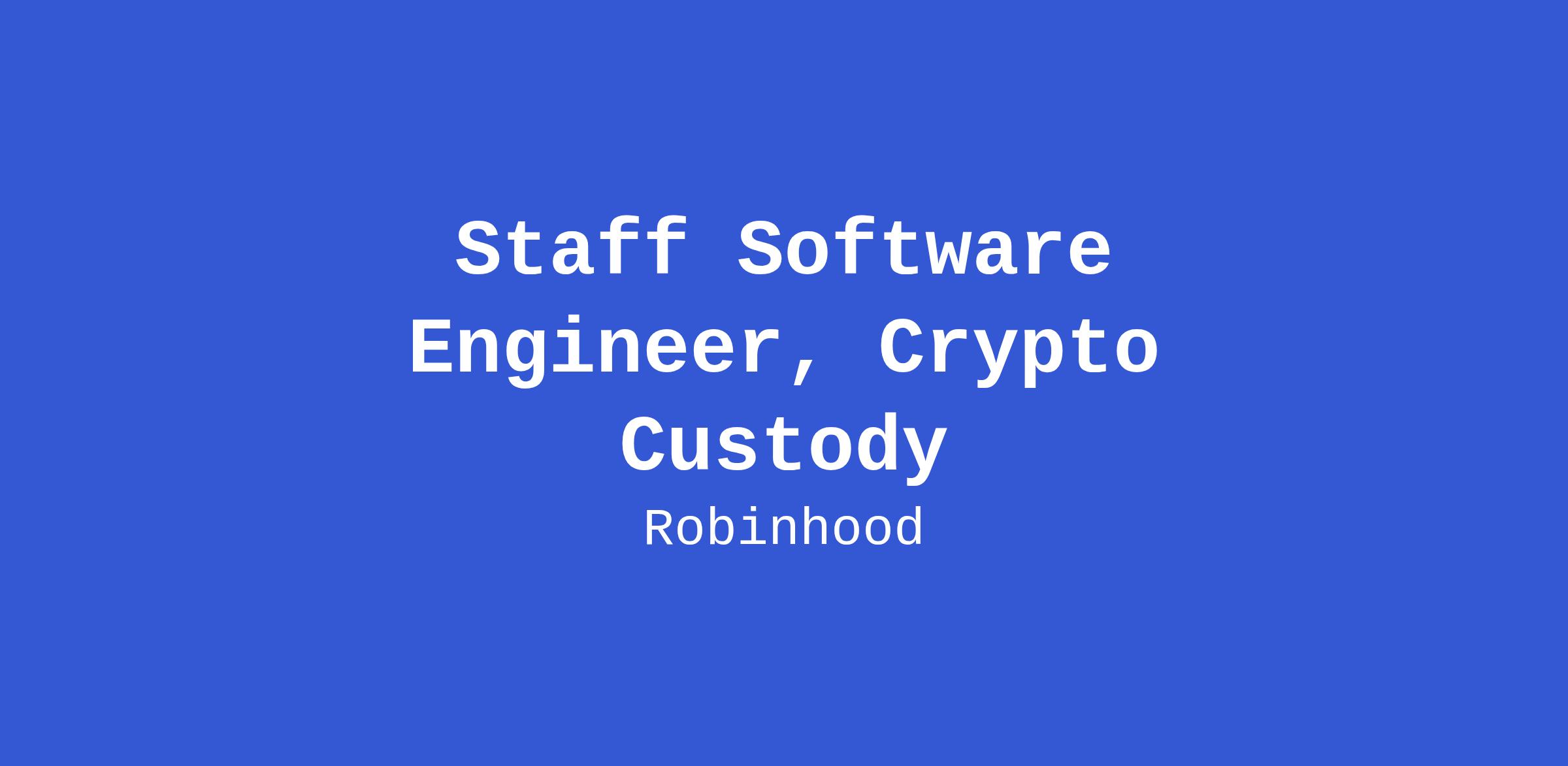 Own and scale Robinhood’s custodial and non-custodial programs, building secure infrastructure for new assets, products, and markets