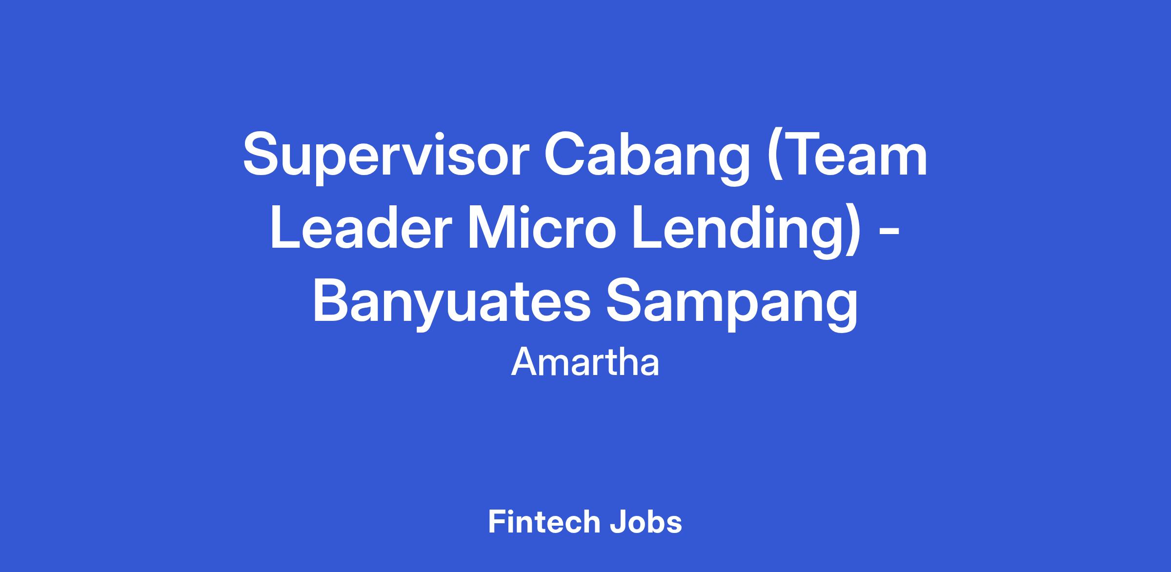 Supervisor Cabang (Team Leader Micro Lending) - Banyuates Sampang