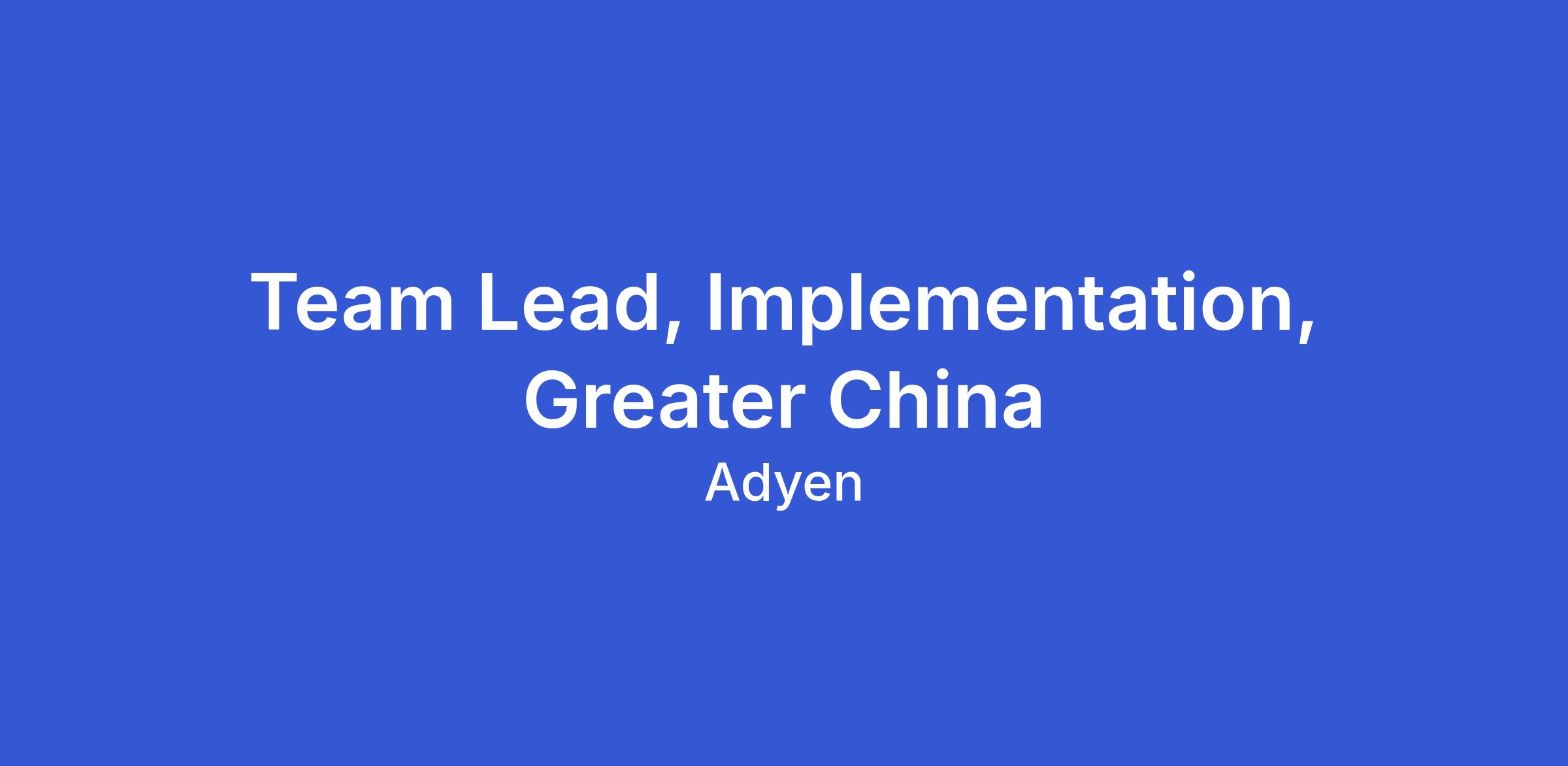 Team Lead, Implementation, Greater China
