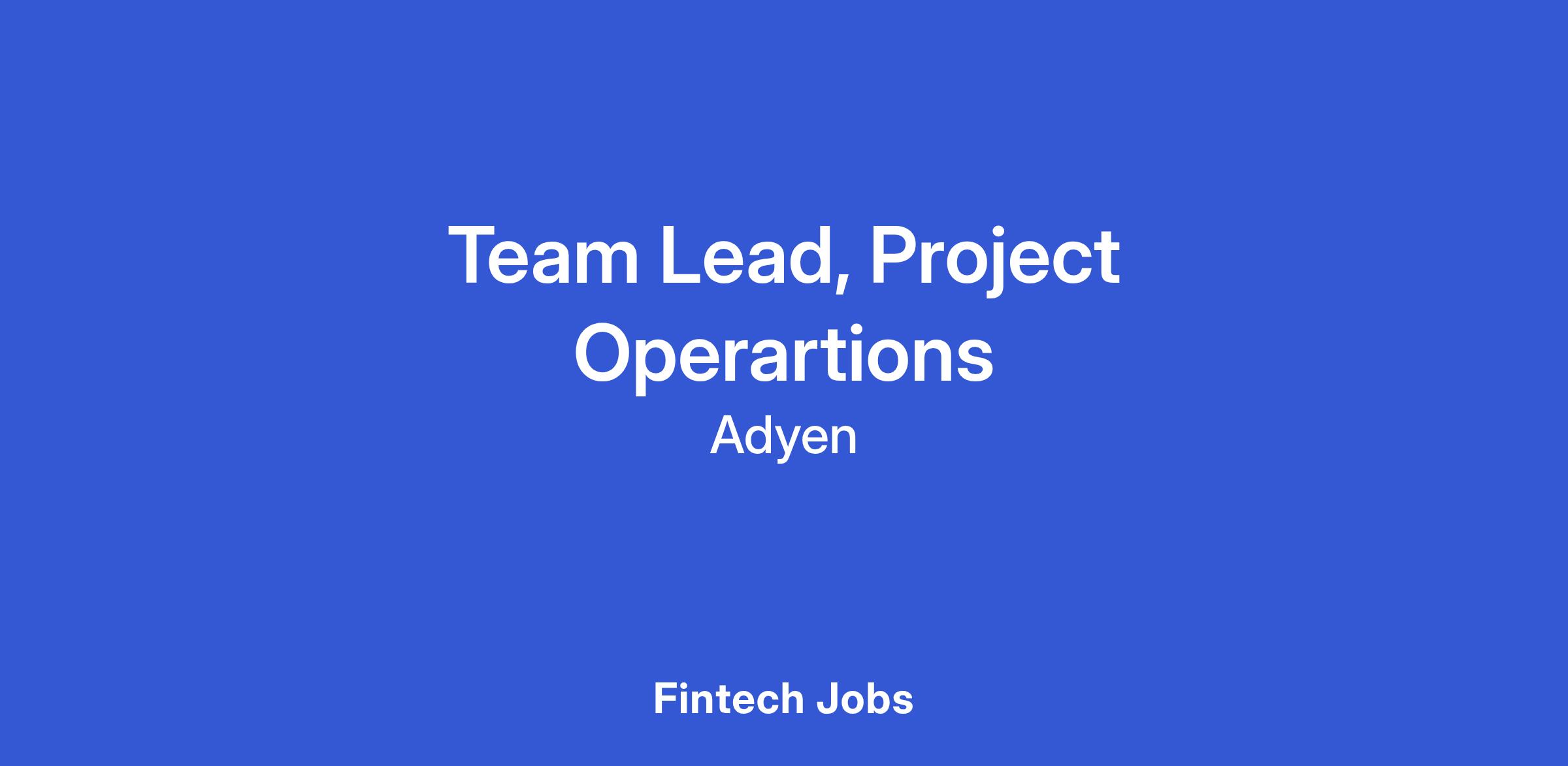 Team Lead, Project Operations