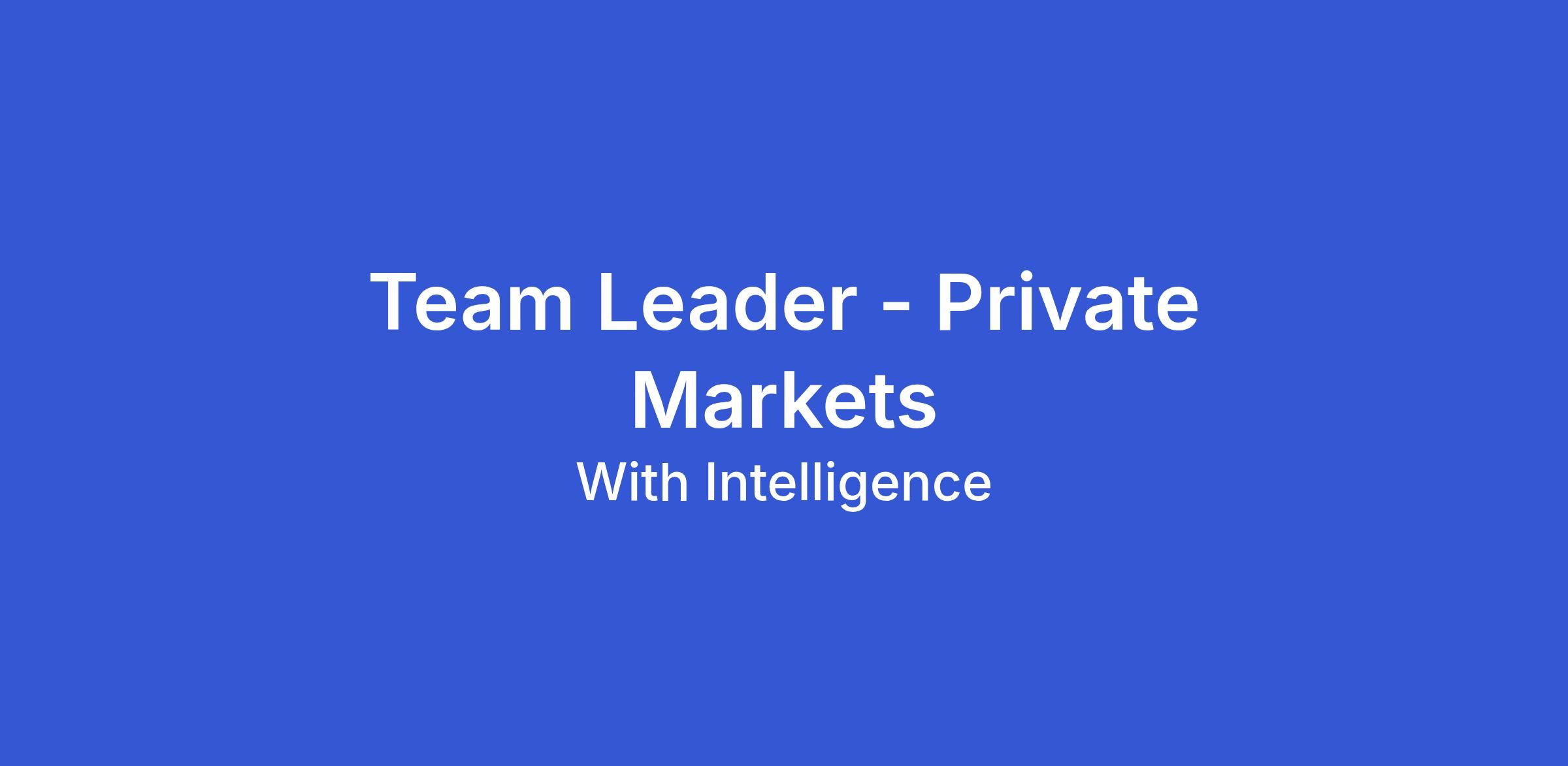 With Intelligence is a leading provider of data and intelligence for the global asset management industry, focusing on delivering high-quality insights to investors and fund managers. We are currently seeking a dynamic and experienced Team Leader for our Private Markets division to spearhead our initiatives in this vital sector.