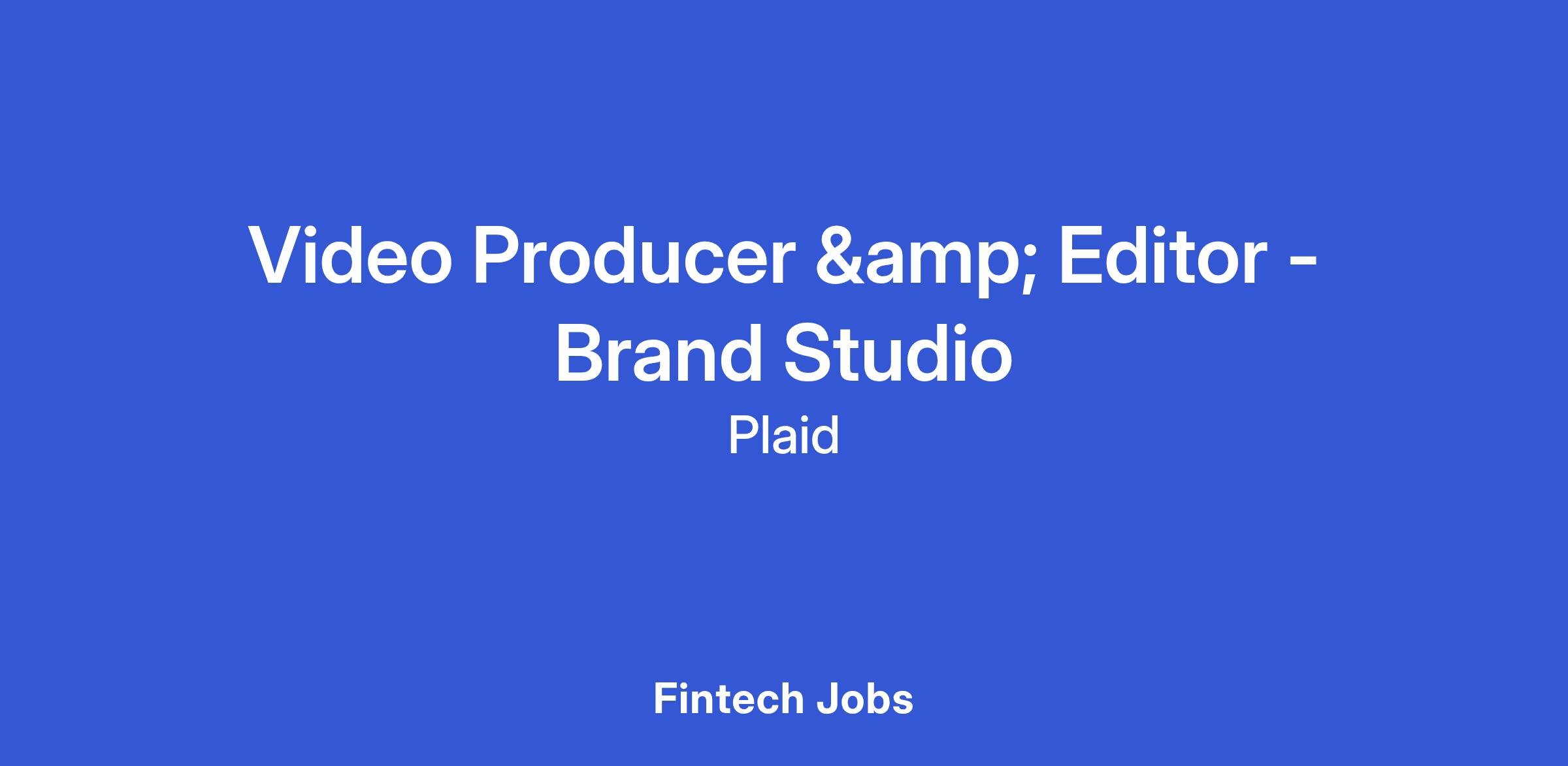 We’re looking for a talented Video Producer & Editor to join our Brand Studio team. From concept through final cut, you’ll craft videos that feel thoughtful, authentic, and distinctly Plaid. This role is ideal for a creative storyteller who thrives both behind the camera and in the edit bay. You’ll capture interviews, brand moments, and product stories that make complex ideas feel human and accessible. Working closely with our video studio manager and cross-functional partners across brand, marketing, and design, you’ll help define the tone and quality of Plaid’s video presence across web, social, and campaigns. Your work will showcase the people and purpose behind Plaid — helping millions better understand the technology and values that power the future of finance.