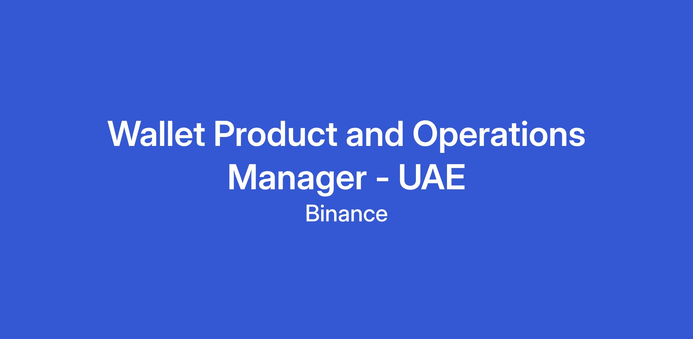 Wallet Product and Operations Manager - UAE